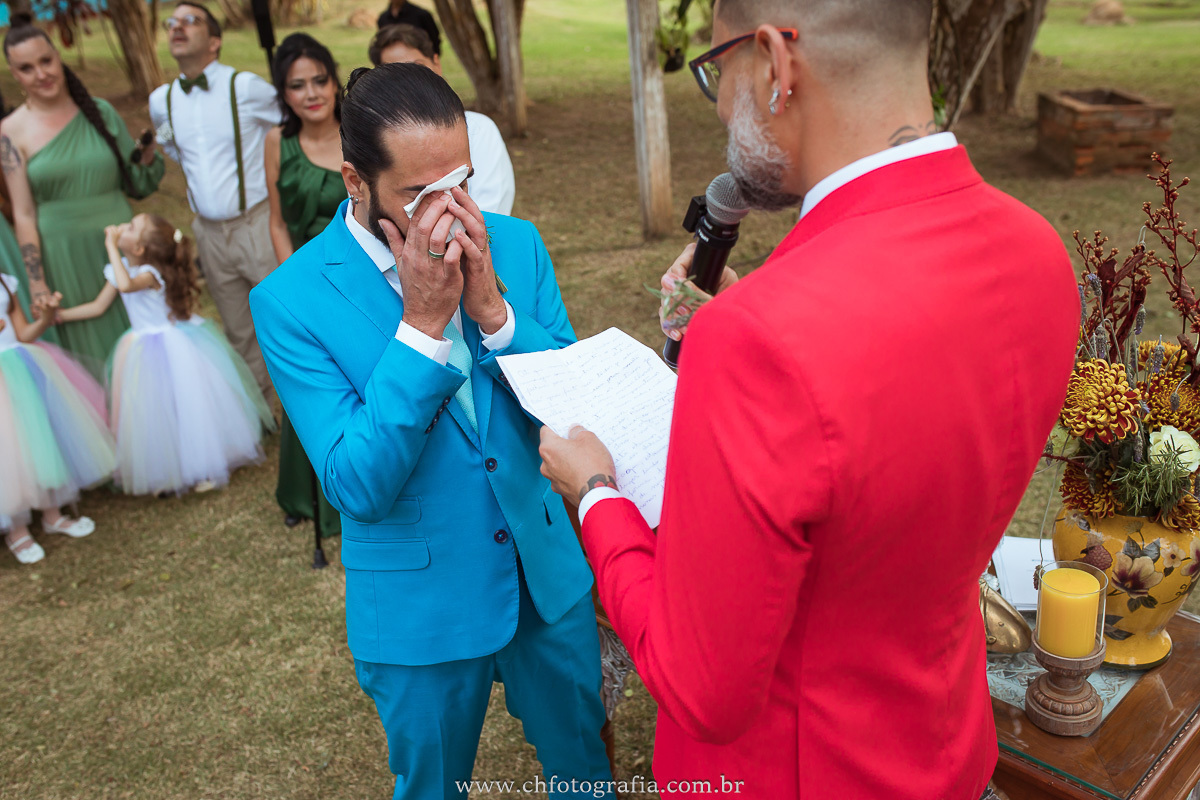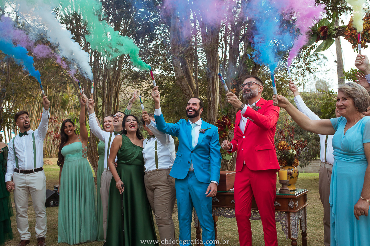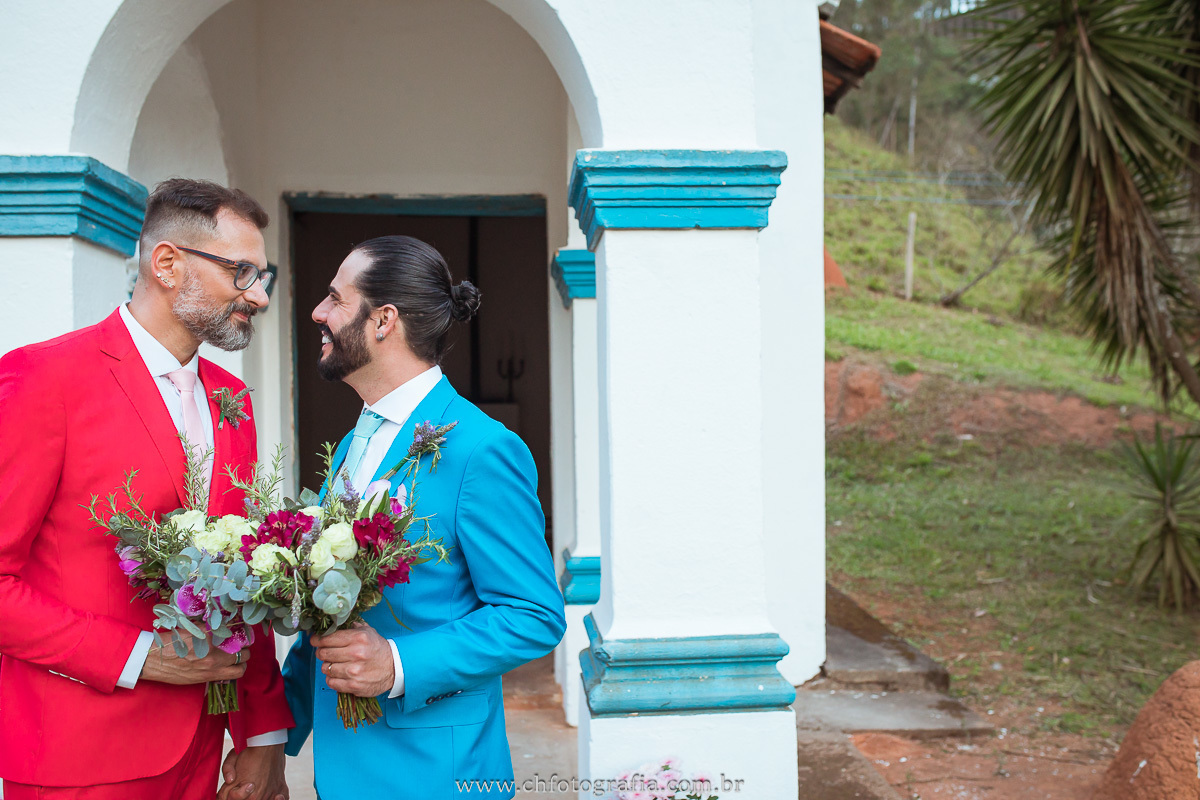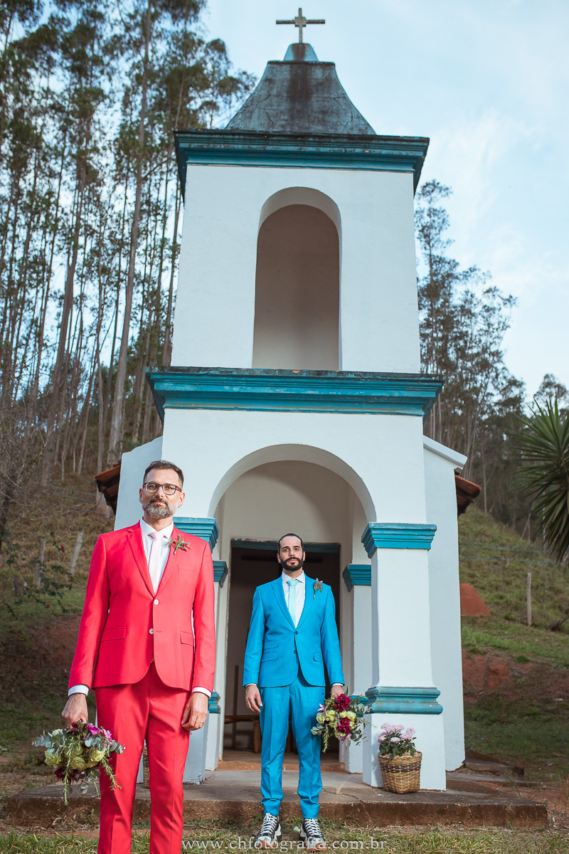 Ensaio thash the dress gay no chalé Fazenda Laranjeiras, foto dos noivos