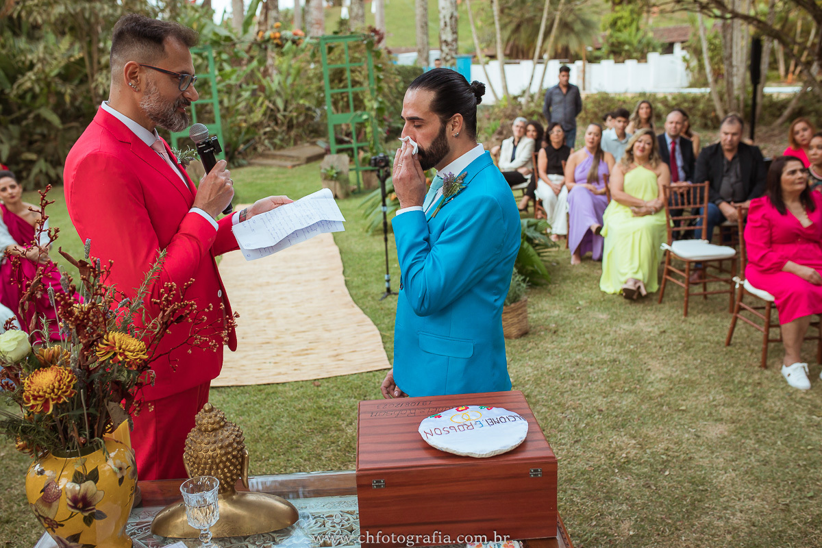 Casamento gay cheio de amor e emoção. Casal celebrando sua união em uma cerimônia íntima e emocionante.