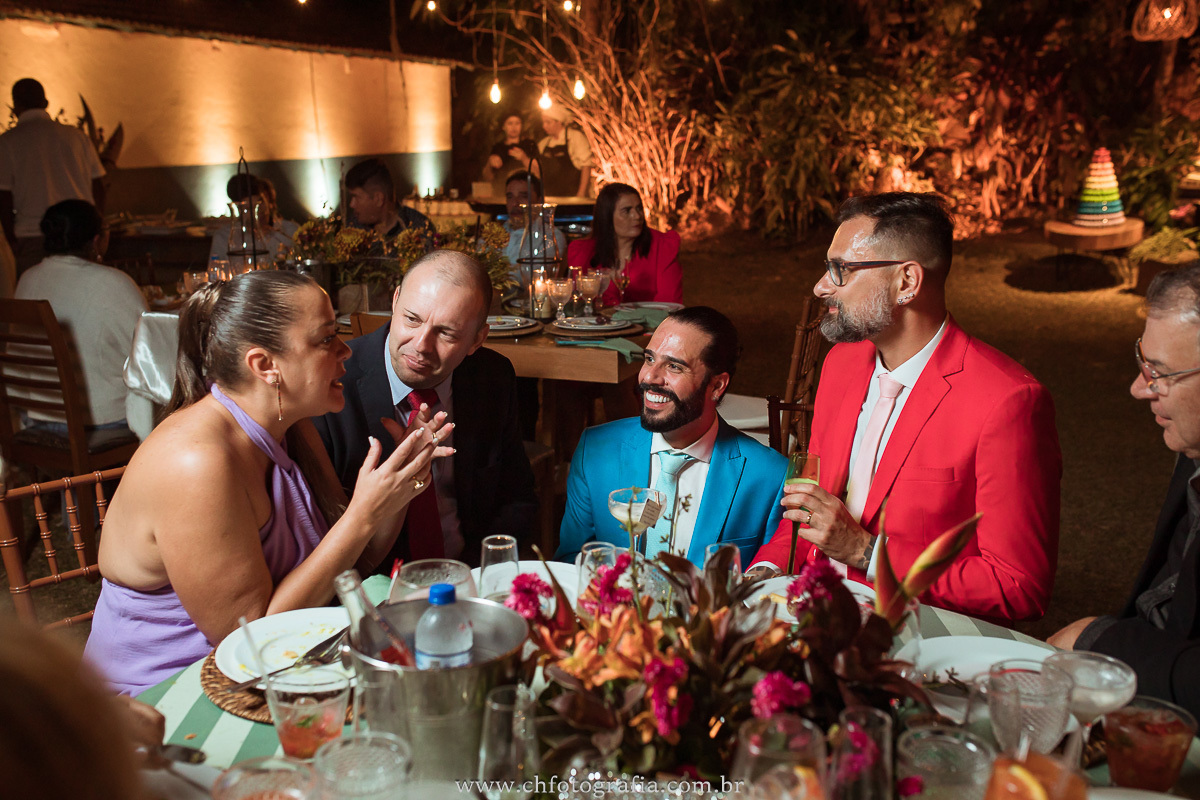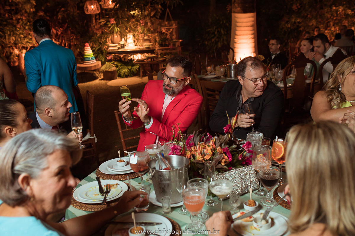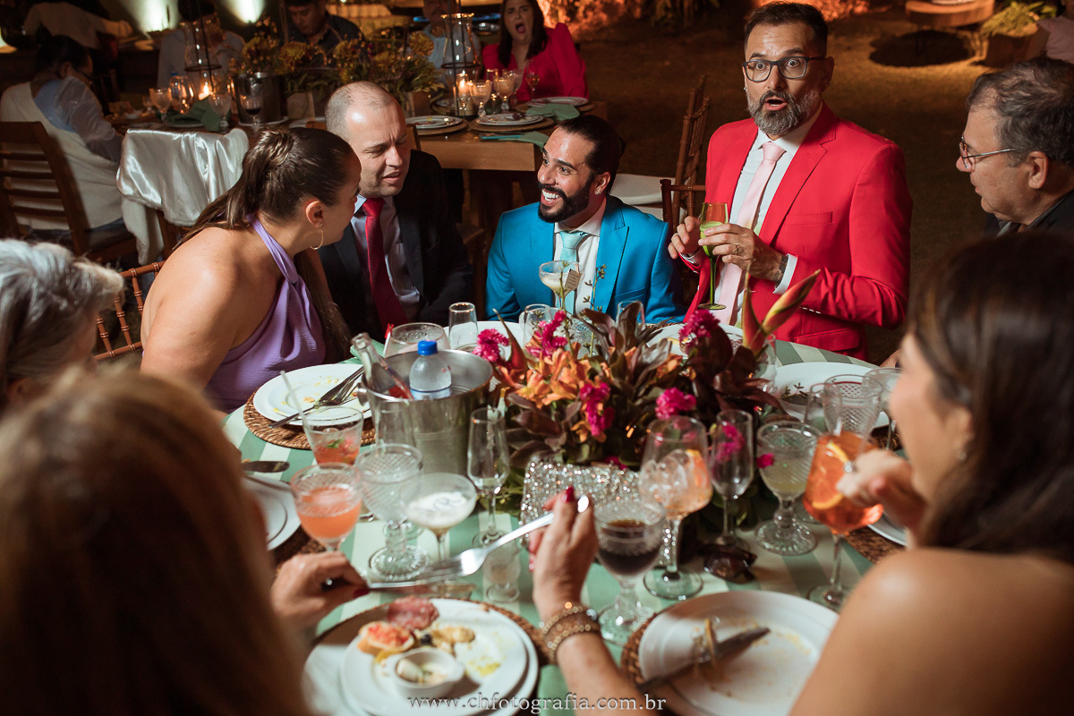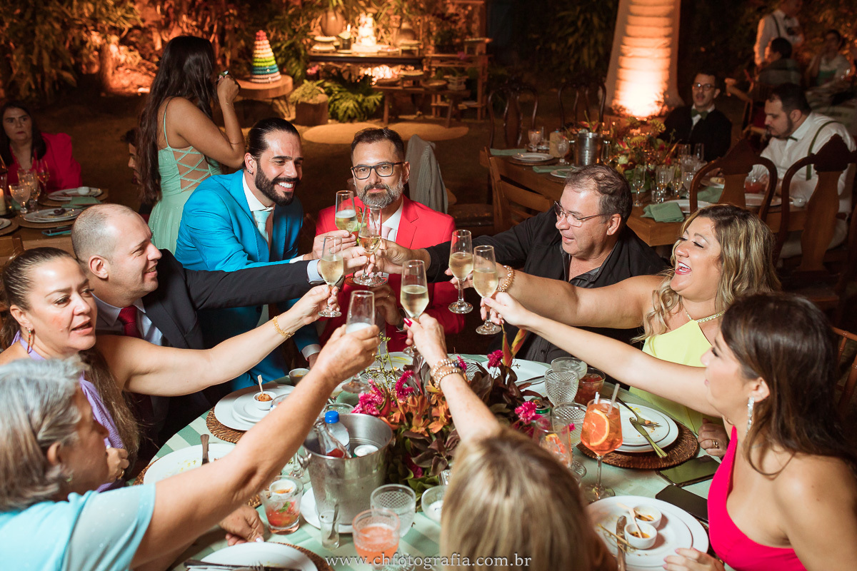 Ensaio thash the dress gay no chalé, noivos gay brindando, noivos gay comemorando