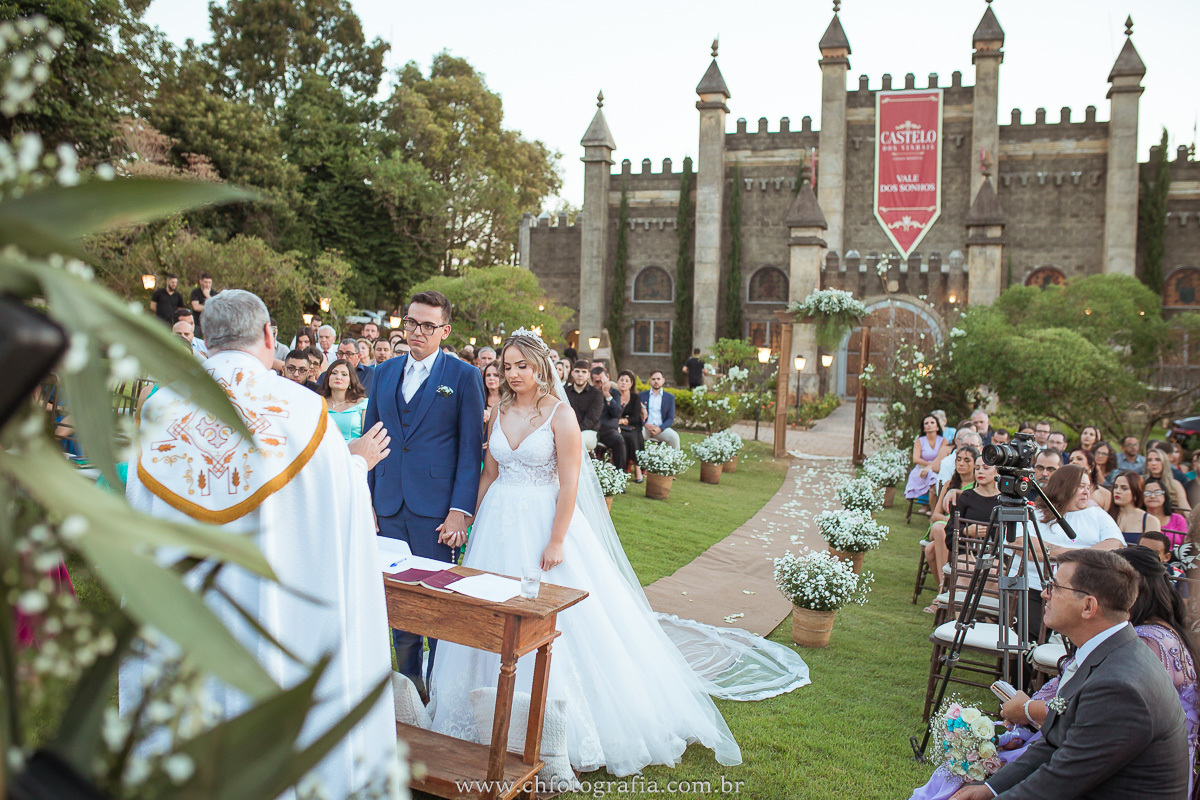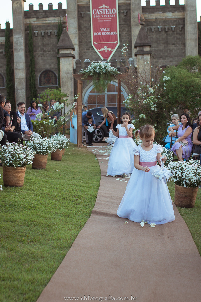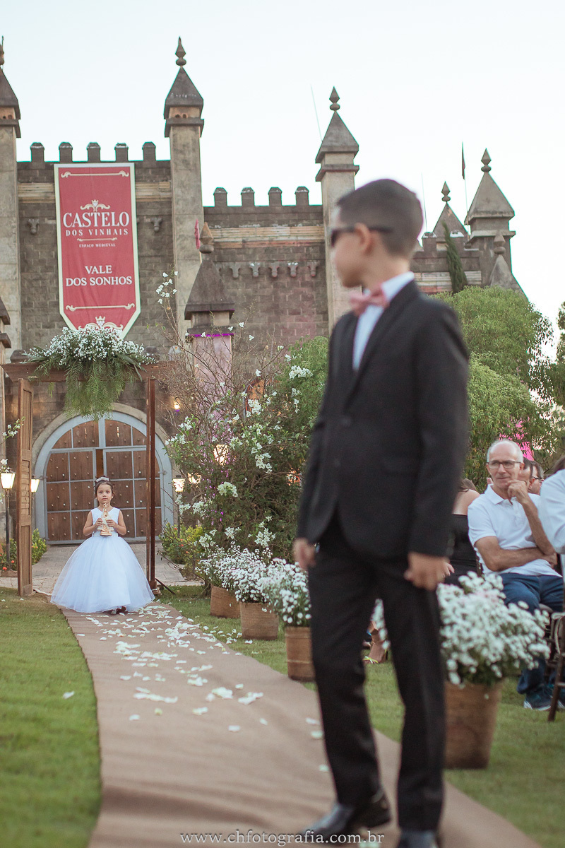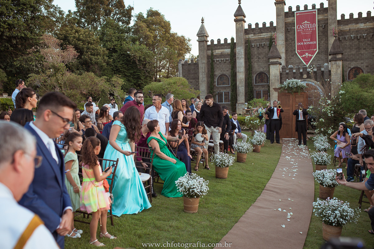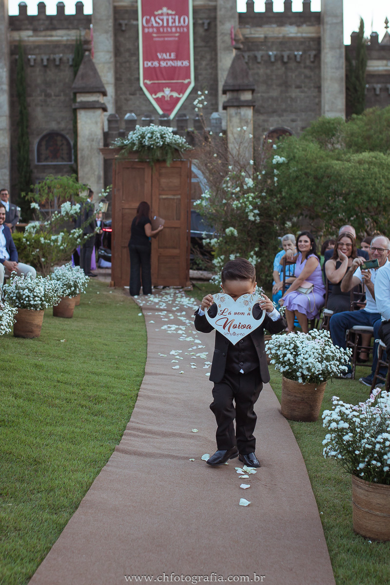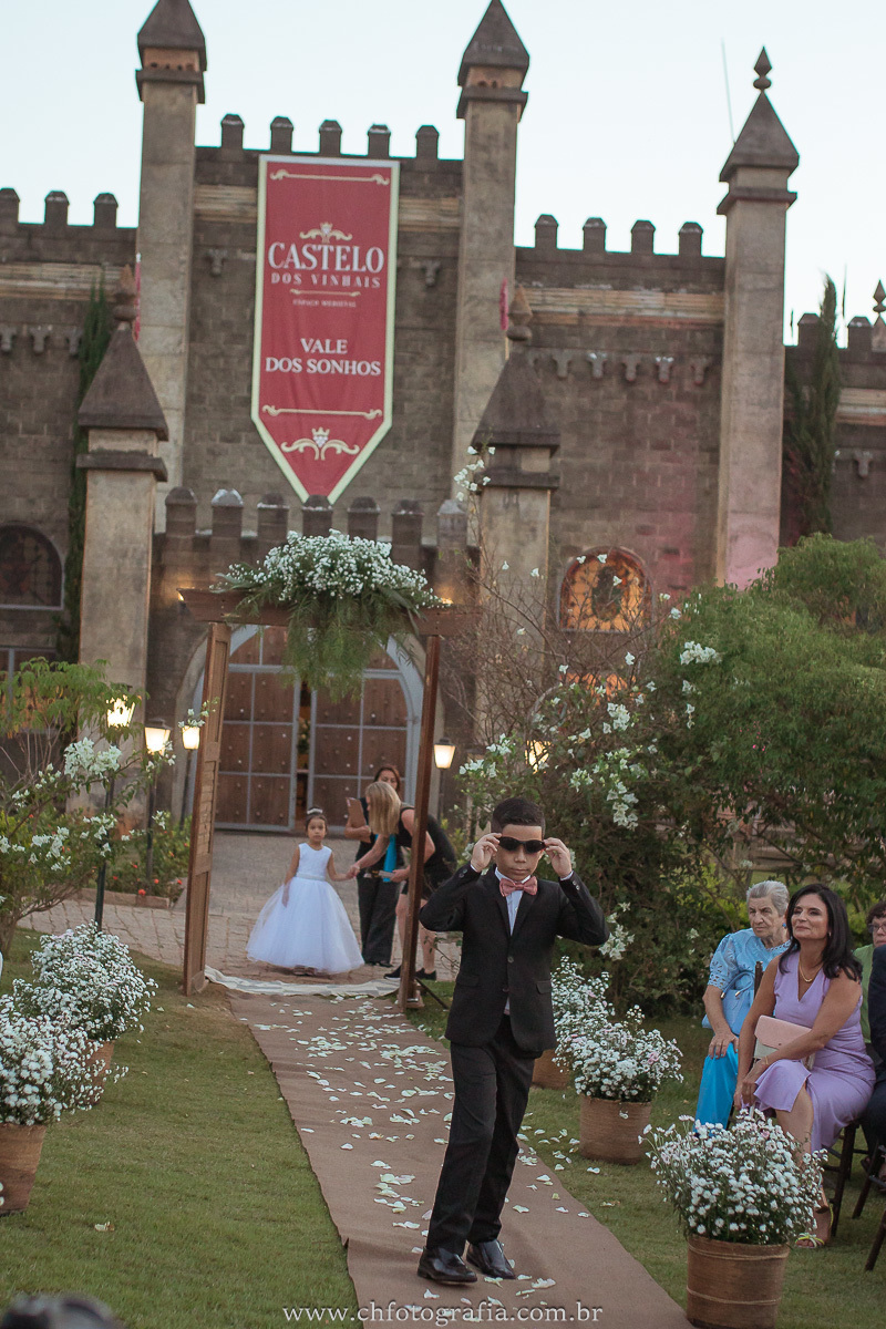 Fotos da entrada da noiva Alessandra no Castelo dos Vinhais.