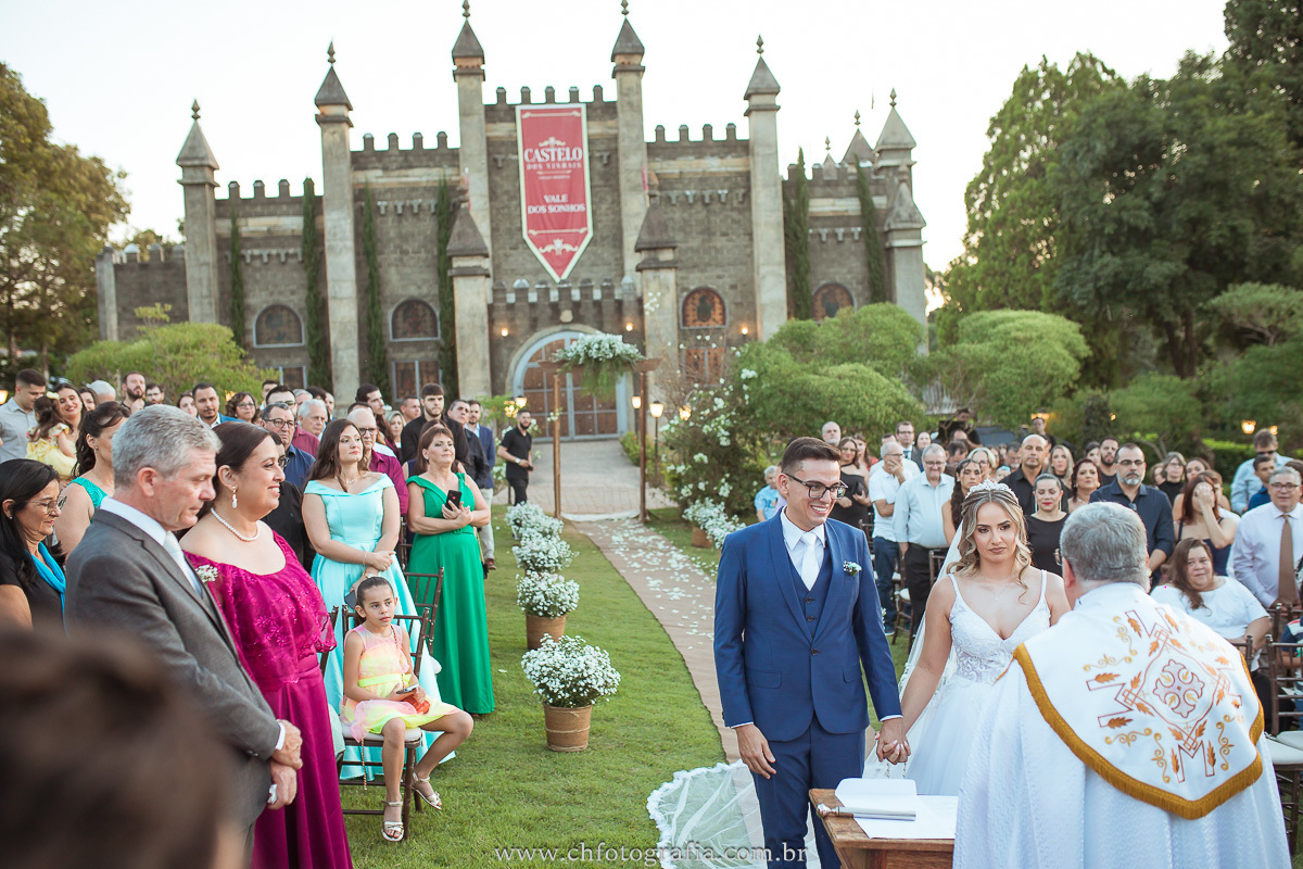 Entrada deslumbrante da noiva Alessandra no casamento no Castelo dos Vinhais.